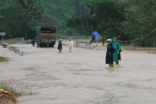 Đến khoảng 10h, theo ghi nhận của phóng viên tại cầu thuộc Km52+546 Quốc lộ 26, nước ngập cao hơn 0,5m, hàng chục xe ô tô không thể di chuyển qua cầu. Tại đèo Phượng Hoàng (tỉnh Khánh Hòa) một khối lượng đất đá lớn từ đỉnh núi sạt lở chắn ngang Quốc lộ 26. Tại đây hàng trăm chiếc xe ô tô, xe máy bị chặn đứng, không thể đi qua. Giao thông ách tắc hơn 1km.