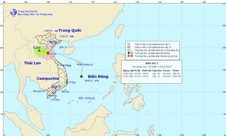 Tin bão số 2 vừa được Trung tâm Khí tượng Thủy văn Trung ương cảnh báo, vào khoảng 4h ngày 17/7, vị trí tâm bão số 2 ở vào khoảng 18,5 độ Vĩ Bắc; 105,0 độ Kinh Đông, trên vùng núi Nghệ An-Hà Tĩnh. Sức gió mạnh nhất ở vùng gần tâm bão mạnh cấp 8 (60-75km/giờ), giật cấp 9-10.