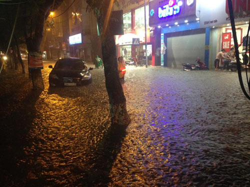 (ĐSPL) - Cơn mưa lớn bất ngờ vào chiều tối 18/8 do ảnh hưởng của cơn bão số 3 đã khiến nhiều tuyến đường của Hà Nội ngập sâu.