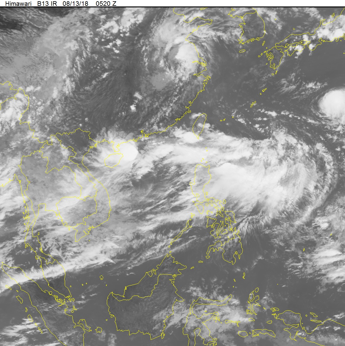 Ảnh chụp mây vệ tinh cơn bão số 4 chiều 13/8 |