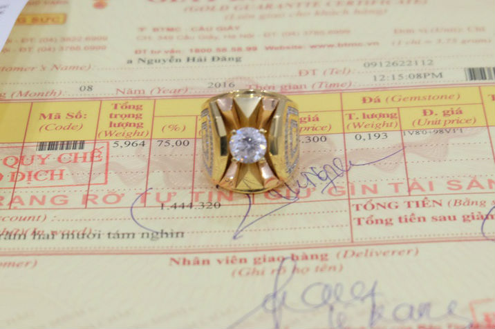 Chiếc nhẫn anh P. đã mua tại cửa hàng của Bảo Tín Minh Châu. |