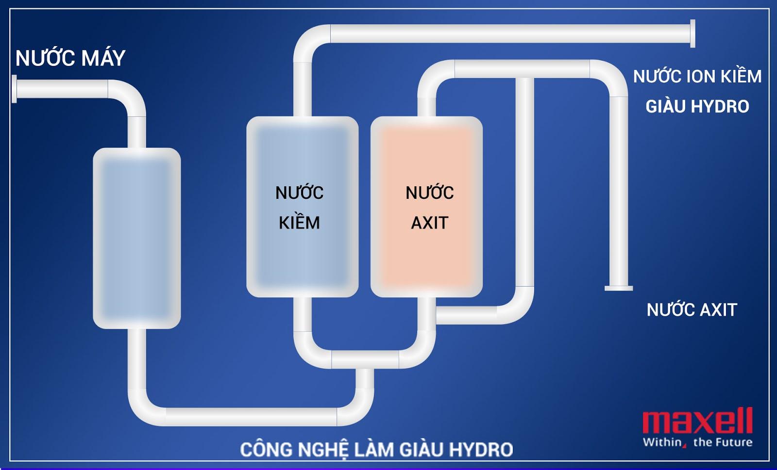Công nghệ điện phân 2 lần là công nghệ tiên tiến nhất hiện nay, giúp tạo ra nước ion kiềm giàu hydro. Nhờ có công nghệ đường hồi nước axit trở lại buồng điện phân giúp cho nước vẫn giữ được nồng độ pH ở mức uống được nhưng hydro lại tiếp tục được gia tăng trong nước.