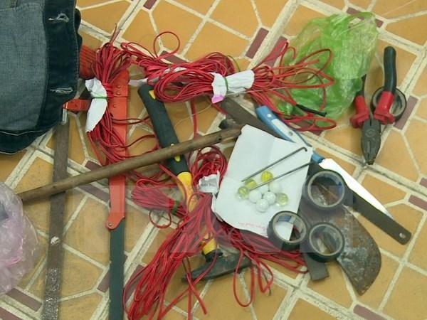 Khám xét nhà của Đăng và Nghĩa lực lượng thu giữ nhiều tang vật có liên quan gồm: súng tự chế, bột ớt, dây điện, cưa, dao Thái Lan. Hiện công an tiếp tục điều tra, làm rõ hành vi để khởi tố bị can.