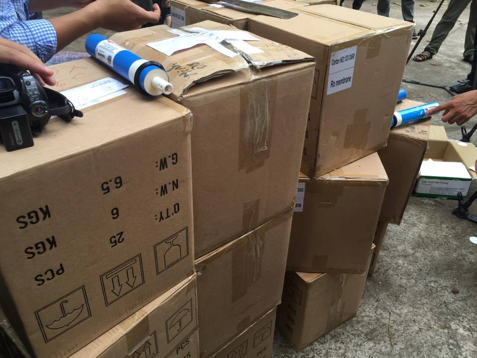 Các thùng hàng chứa màng lọc nước giả nhãn hiệu Dow Filmtec™ RO bị thu giữ |