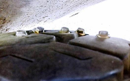 Lốp xe tải bị đinh đâm thủng - Ảnh: Tiến Quyết/ Tri thức trực tuyến |
