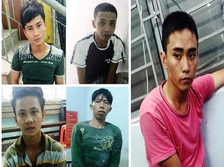 Báo Dân Trí cho biết, các đối tượng gồm: Nguyễn Hoàng Dũng (tức “Bin”, 23 tuổi, có 1 tiền sự); Trần Ngọc Hoàng (tức Hoàng “mắt lồi”, 24 tuổi); Văn Công Thắng (tức Tý “cao”, 27 tuổi, có 1 tiền án về tội cướp giật tài sản, tất cả cùng ngụ quận 8); Trần Đình Tuấn (tức Tuấn “nhóc”, 25 tuổi, ngụ Quảng Ngãi, có 1 tiền án về tội trộm cắp tài sản) và Danh Văn Cường (18 tuổi, ngụ huyện Nhà Bè).
