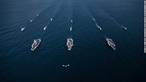Sau 10 năm, 3 siêu tàu sân bay của Mỹ mới cùng hoạt động tại khu vực Thái Bình Dương. Ảnh: CNN |