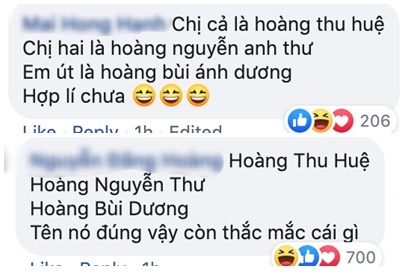Nhiều khán giả thấy việc cả ba chị em cùng là máu mủ mà không cùng họ thì thật khó hiểu. Bên cạnh đó, khá nhiều người cũng lên tiếng... bênh vực, giải thích hộ cho cả ba chị em. Nhiều ý kiến cho rằng chữ "Hoàng" trong tên của chị cả Huệ mới là họ của cả gia đình. Tên Thư Nguyễn trên facebook của Thư chỉ là tên... lót mà thôi, chữ Bùi trong facebook của Dương cũng thế. Tên lót của cả ba có khi là Họ của ông bà ngoại được ghép vào cũng không chừng.
