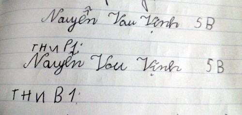 Chị Vinh còn cho biết, một số học sinh trong thôn học chung lớp với Vịnh cũng không biết đọc, biết viết; nhiều cháu đọc, viết rất kém nhưng vẫn lên lớp đều đều. trong số đó có Vịnh. Chúng tôi đã gặp học sinh lớp 4, lớp 5 ở thôn Nghĩa An thì đúng như thông tin chị Vinh cho biết, đa số các cháu đều đọc và viết rất kém. Có cháu ngoài tên mình ra không biết viết chữ gì khác.