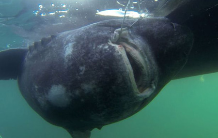 Con cá mập khổng lồ bị mắc vào lưỡi câu tại vùng biển Na Uy. |