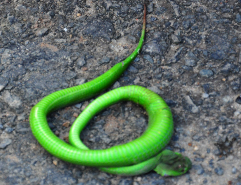 Theo tin tức trên báo Thanh Niên, sáng ngày 17/1, anh Phùng Đức Tám (30 tuổi, ngụ P.Hòa Khánh Bắc, Q.Liên Chiểu TP.Đà Nẵng) bắt được một con rắn lục đuôi đỏ dài 70 cm ở phía sau vườn nhà.