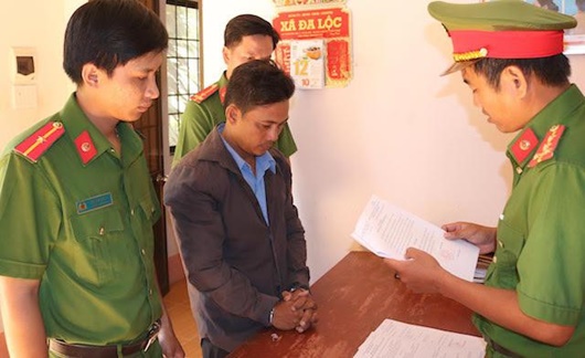 Công an huyện Châu Thành thực hiện lệnh bắt Thạch Vy. Ảnh: CAND |