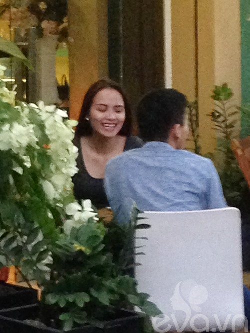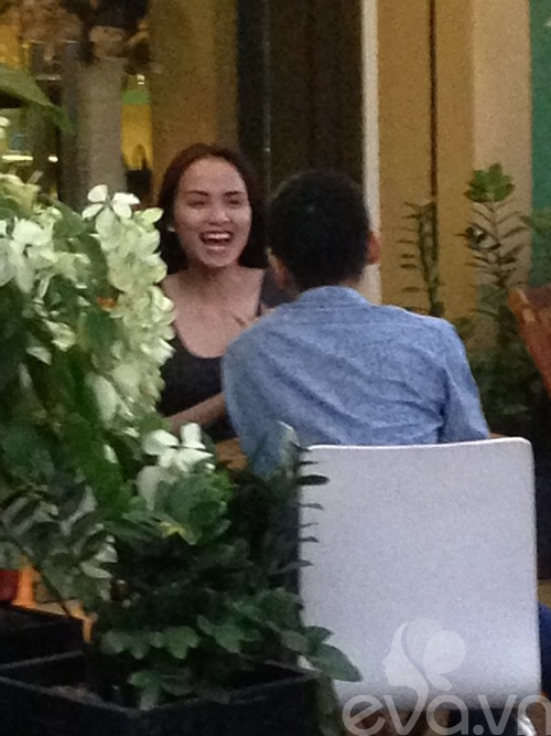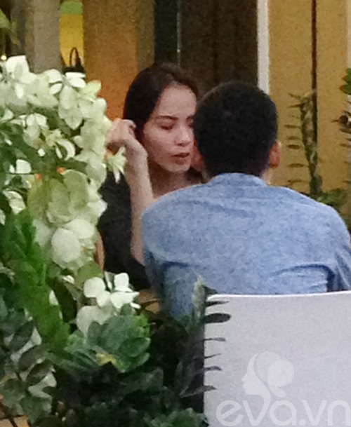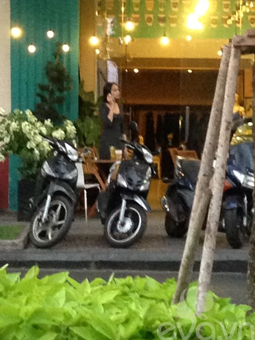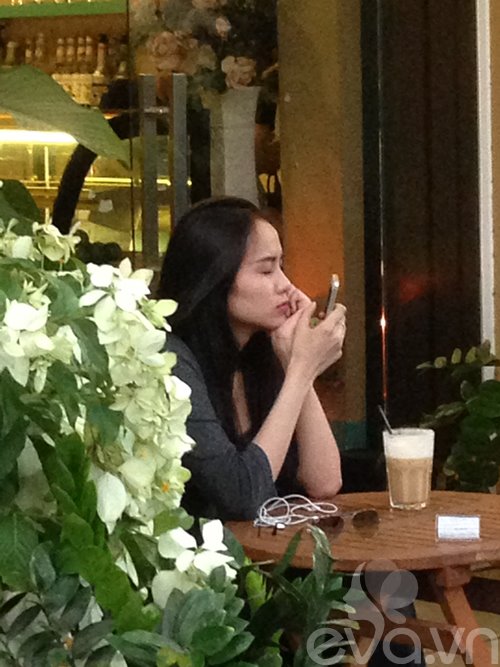 | Diễm Hương thoải mái hơn khi tình cờ gặp một người bạn tại quán. |