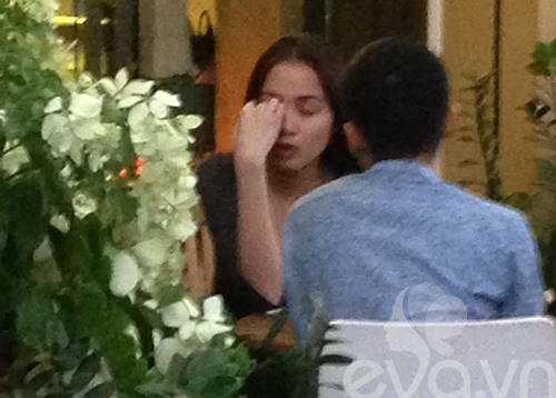 | Cô trò chuyện khá lâu với người bạn và thỉnh thoảng lấy tay lau nước mắt. |