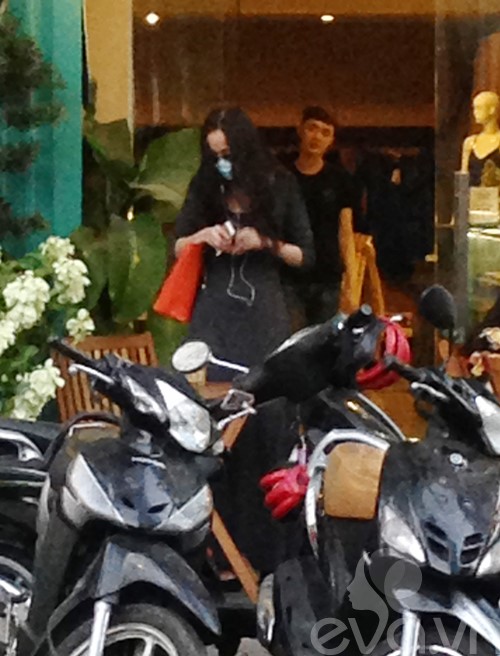 | Hoa hậu Diễm Hương ăn mặc giản dị, đeo kính và bịt khẩu trang xuất hiện tại một quán cafe ngay trung tâm thành phố, |