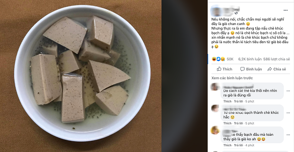 Nam thanh niên trẻ có nickname L.T tâm sự: "Nếu không nói chắc chắn mọi người sẽ nghĩ đây là giò chan canh nhưng thực ra em đang tập nấu chè khúc bạch đấy ạ. Nó là chè khúc bạch vị socola. Xin nhấn mạnh là chè khúc bạch chứ không phải nước thần kỳ tách tiêu đen từ giò bò đâu ạ".