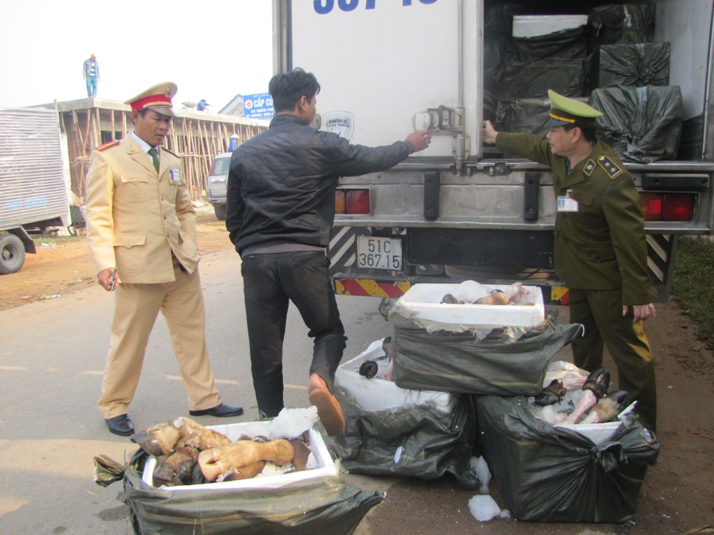 Qua kiểm tra, lực lượng chức năng phát hiện sau thùng xe chở 20 thùng xốp đựng đầy các loại chân trâu, chân bò đã bốc mùi hôi thối. Tổng trọng lượng số hàng gần 1,4 tấn.