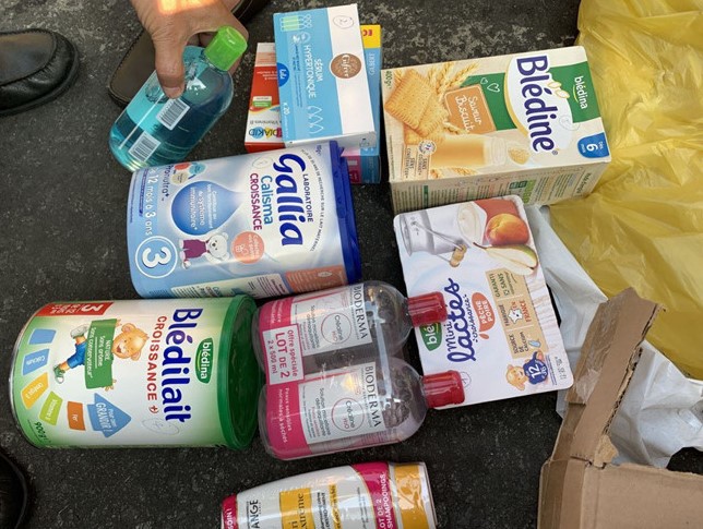 Được biết, tất cả đều hàng của Pháp bao gồm nước tẩy trang Bioderma của Pháp, sữa bột hiệu Gallia dành cho trẻ từ 12 tháng tuổi đến 3 tuổi, sữa Blédilait cũng dành cho trẻ trên 1 tuổi, dầu gội đầu hiệu Dessange, sirum Gifrer…