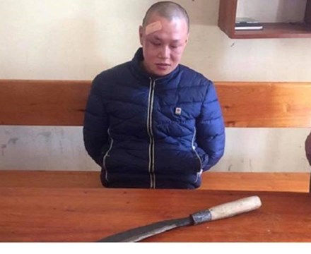 Đối tượng Hoàng bị bắt giữ cùng hung khí chống trả khiến chiến sỹ công an phường Nam Hà bị thương - Ảnh: báo Lao động |