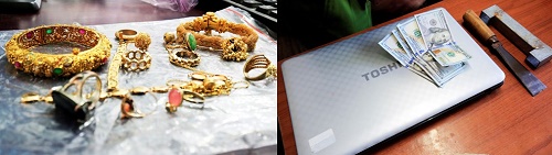 Gã trộm nhiều trang sức như vòng, lắc, nhẫn, bông tai bằng vàng, đồng hồ, 400 USD và một laptop... rồi đưa về cất giấu tại căn nhà trên đường Ngô Quyền, phường 6, TP Đà Lạt.