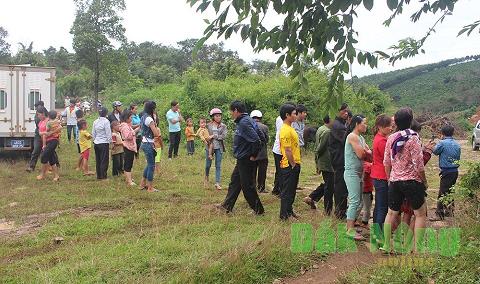Người dân theo dõi lực lượng công an áp giải đối tượng thực nghiệm lại hiện trường vụ án - Ảnh: Báo Đắk Nông online |