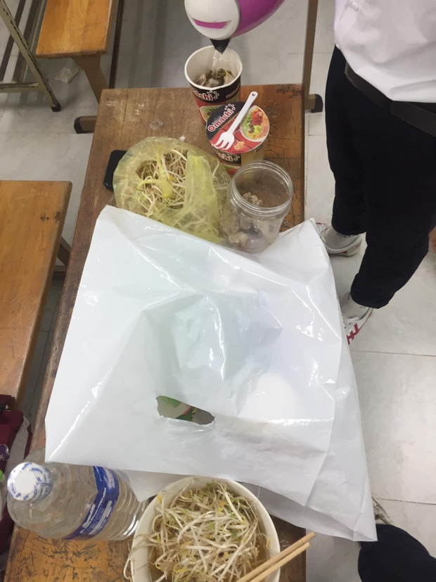 Theo đó, thay vì cô gắng chờ đợi đến lượt mua đồ ăn ở căng tin thì cậu học trò "lắm tài" nàu đã mang hẳn giá đỗ, thịt và phích nước đến lớp để nấu mì ăn sáng.