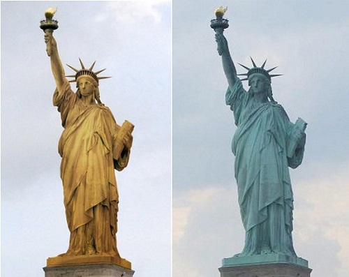 | Tượng Nữ Thần Tự Do mang màu nâu đỏ chứ không phải màu xanh |