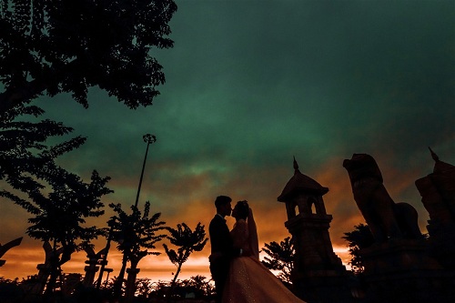 Khu vực trò chơi Phi long thần tốc khi hoàng hôn xuống rất thích hợp với những bộ hình cưới nhuốm màu bí ẩn như thế này.