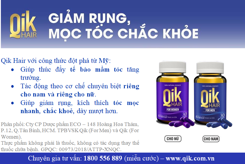 Trên cơ sở đó, các nhà khoa học nghiên cứu tinh chất Cynatine® độc quyền kết hợp với các tinh chất quý từ thiên nhiên phát triển thành công thức chuyên biệt là: CLI-α (Qik Hair cho nam) và CLI-β (Qik Hair cho nữ). Các hoạt chất này trong sản phẩm Qik Hair được chứng minh có khả năng tác động lên tế bào mầm tóc, thúc đẩy chúng phát triển, ổn định thần kinh nội tiết, hạn chế các yếu tố gây hại cho tóc, từ đó giúp giảm rụng, kích thích tóc mọc lên khỏe - đẹp dài lâu