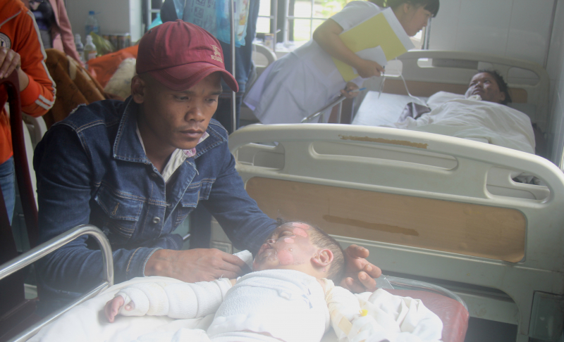 Theo tin tức mới nhất trên Báo Giao thông, sáng 4/10, Bác sĩ Bùi Chí Trung – Phó Giám đốc Bệnh viện Đa khoa tỉnh Đắk Nông cho biết, đơn vị đang tích cực điều trị cho hai bệnh nhân là Trần Thị Còn (22 tuổi) và cháu Kim Hùng (2 tuổi, con trai chị Còn) nhập viện trong tình trạng bỏng nặng ở mức độ 3.