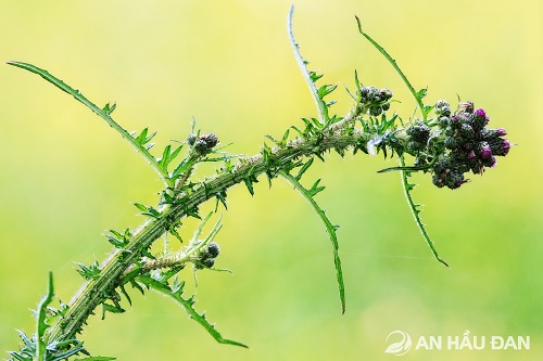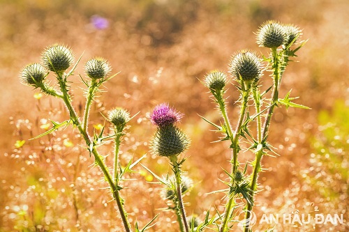Nhưng các cành cây bắt đầu vươn lên, rắn chắc. Khi chưa nở hoa, từng nụ hoa nhìn qua như một quả cầu gai nhỏ, xanh mướt, mọc trên những thân cạnh mạnh mẽ, vượt trội hơn các loài cỏ dại đã từng lớn lên cùng cúc lục lăng trước đây.