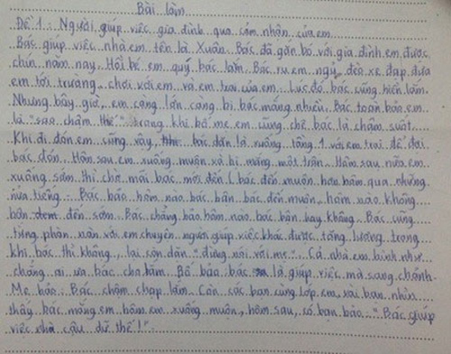 Trong đề bài hướng đến ngày Quốc tế Lao động (1/5), học sinh lớp 5 có những chia sẻ thật thà, nhân văn về người giúp việc.