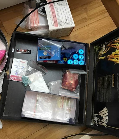 Thực hiện Lệnh khám xét khẩn cấp nơi ở của Nghĩa tại số 269 Nguyễn Cộng Hòa, An Dương, Lê Chân, Cơ quan điều tra thu giữ 20 viên đạn, 19 viên nén hình tròn chữ LX, 3 viên nén hình tròn có chữ K, 1 viên nén hình tròn và túi giấy màu tím, 13 túi màu đỏ hình côn trùng, 1 túi giấy màu tím, 1 túi giấy màu đỏ và 5 túi nilon chứa bột màu trắng; 2 túi nilon chứa bột màu trắng ngà; 10 lọ chứa dung dịch lỏng có biểu tượng Furari; 1 cân tiểu ly và hàng trăm túi nilon khác nhau để đóng gói ma túy.