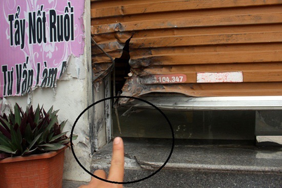 Vị trí nhóm đối tượng đặt thuốc nổ ở hiên nhà tầng 1. Ảnh: Báo GĐ&XH |
