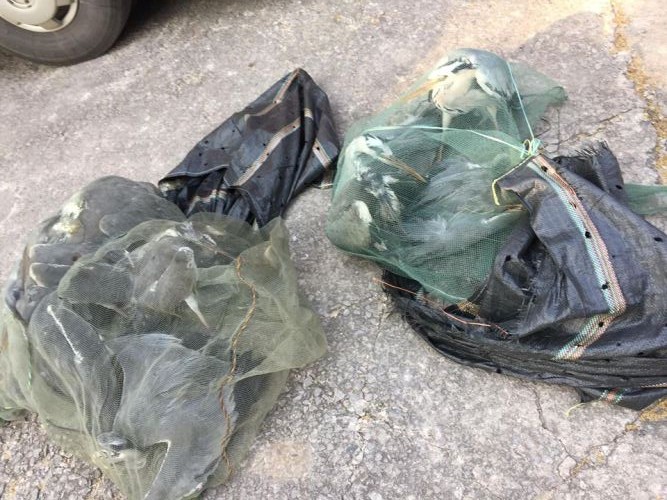 Số nội tạng bốc mùi hôi thối và chim trời bị lực lượng chức năng thu giữ và xử lý. |