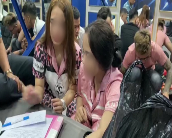 Đến khoảng 20h30 cùng ngày, công an ập vào kiểm tra, phát hiện 12 người gồm 6 nam, 6 nữ đang tổ chức sử dụng trái phép chất ma túy. Qua kiểm tra nhanh, 12 người này đều dương tính với ma túy.