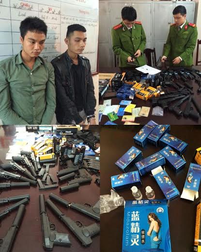 Nói về số tang vật trên, Công an TP Thanh Hóa nhận định: “Riêng loại súng bắn đạn bi có thể bắn chết người, còn bình xịt hơi cay, dùi cui điện hay thuốc kích dục đều có thể gây nguy hiểm cho sức khỏe con người”.