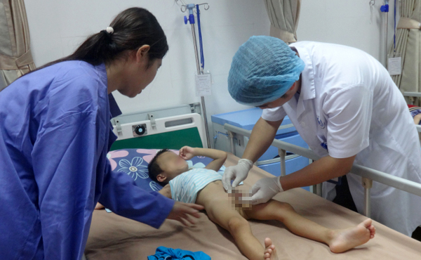 Bé trai mắc sùi mào gà ở huyện Khoái Châu (Hưng Yên) - Ảnh: Vietnamnet |