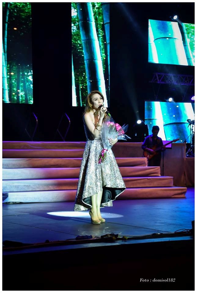 Hình ảnh Mỹ Tâm trong tour diễn Giai điệu yêu thương 11 hồi tháng 9/2015. |