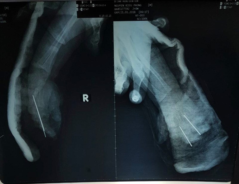 Bé trai ở thị xã Bến Cát, Bình Dương được người nhà đưa tới Bệnh viện Chấn thương chỉnh hình TP.HCM trong tình trạng bàn tay phải bị đứt lìa, ngón bị dập nát.