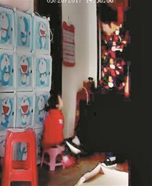17h45 cùng ngày, người giúp việc tiếp tục bạo hành với bé Ni Ni, khi thì đá, khi thì tát, sau đó không lâu bà ta dùng tăm nhét vào miệng Ni Ni vô cùng ghê sợ.
