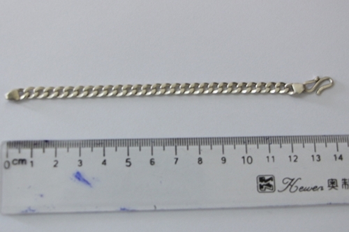 Sợi lắc tay dài 14cm được gắp ra từ khí quản của bệnh nhi - Ảnh: Bảo vệ pháp luật. |