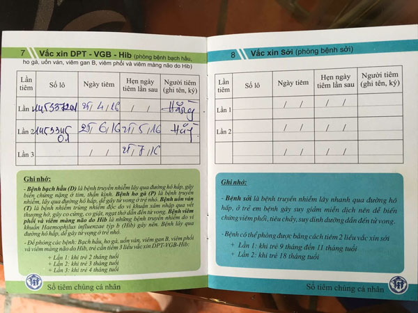 Sổ theo dõi tiêm chủng của bé T. Ảnh: Vietnamnet. |