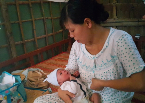 Bé Dương Minh Phát trong vòng tay yêu thương của mẹ. |