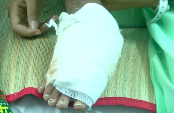 Bé gái 13 tuổi ở Ninh Thuận bị rắn cắn khi mang cơm cho bà, sau 1 tuần vết thương đã bị hoại tử lộ xương bàn chân gây ra đau đớn.
