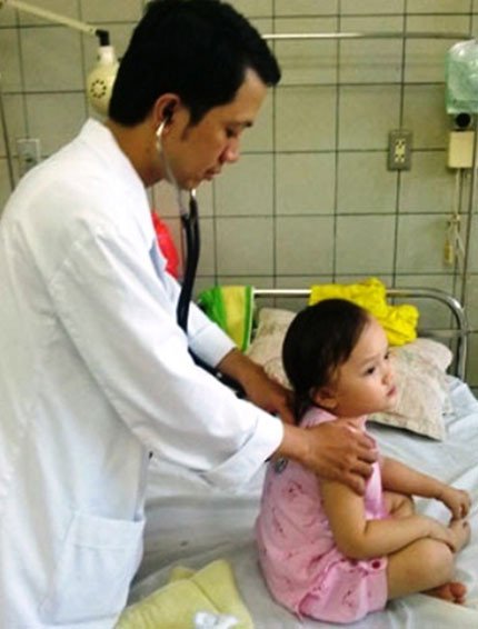 Bác sĩ thăm khám cho em Ngọc A tại bệnh viện. (Ảnh Dân Việt) |