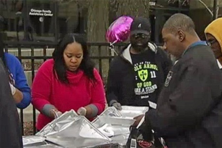 Gia đình cô bé đã cung cấp bữa ăn cho 125 người vô gia cư tại Công viên East Garfield.