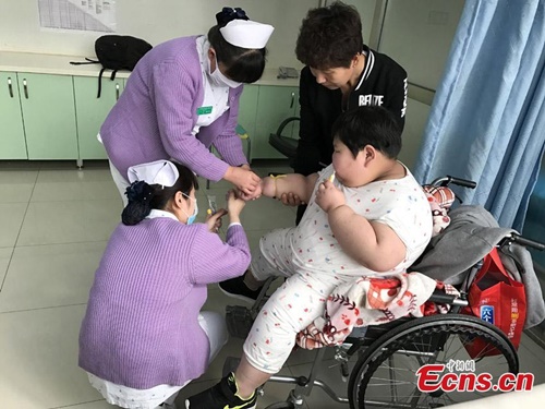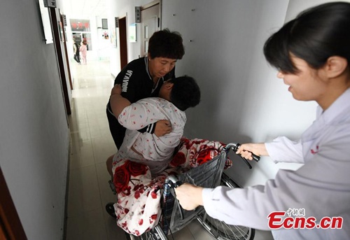 | Do mọi di chuyển của bé cần phải có xe lăn hoặc người giúp nên mẹ Xiao Yun đã phải nghỉ việc để ở nhà chăm con. |