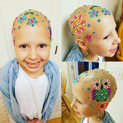 | Mái tóc của Gianesa rụng hoàn toàn. Thay vào đó là mẫu tóc độc lạ được mẹ cô tạo mẫu. |