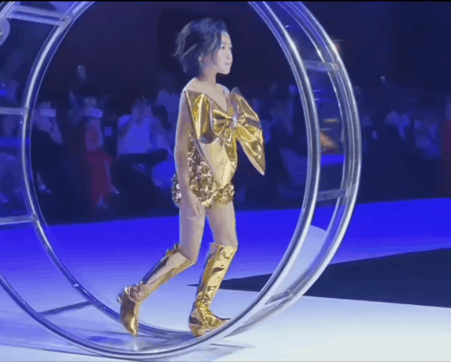 Theo đó, cô bé mở màn bộ sưu tập The Present của nhà thiết kế Hà Nhật Tiến bằng màn catwalk trong vòng xoay trên nền nhạc Giáng sinh khiến khán phòng reo hò không ngớt. Đây cũng là tiết mục kết của Asian Kids Fashion Week 2020.